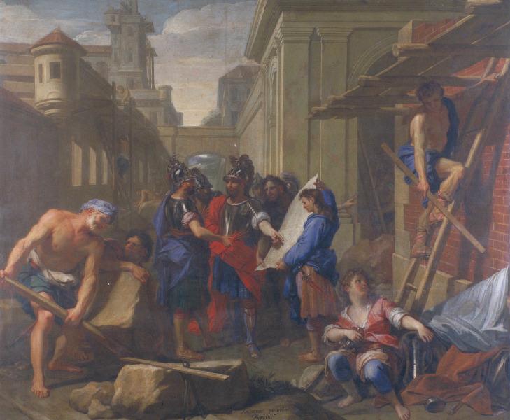 scène (Tectosage, fondation : ville, rue, chef militaire, à l'antique, présentation : plan, ouvrier)