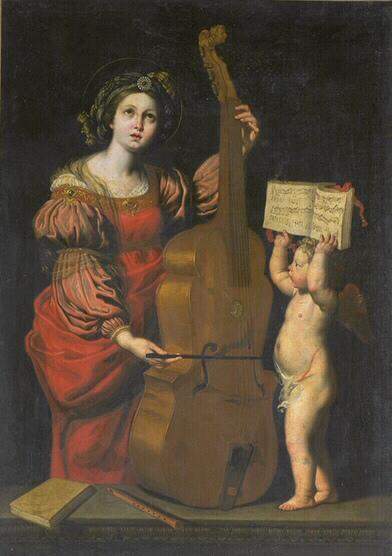 figure (sainte Cécile de Rome, violoncelle, ange)
