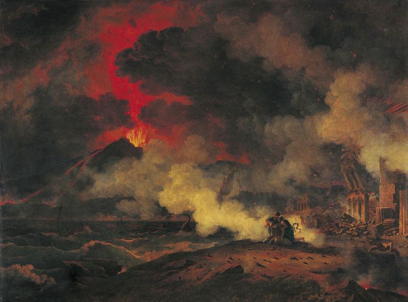 scène historique (mort, Pline l'Ancien) ; paysage ; (éruption, volcan, Vésuve, ruines)