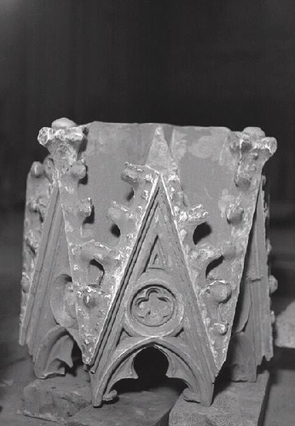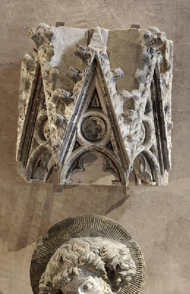 La chapelle de Rieux était située au nord-est de l'église conventuelle des Cordeliers, derrière l'abside, à Toulouse ; ancienne chapelle fondée par Jean Tissendier, évêque de Rieux-Volvestre (1324-1348), au nord-est de l'église du couvent des Cordeliers, derrière l'abside ; voir aussi : Dais engagé à décor d'architecture (RA 554 BIS A) ; Numéro d'inventaire de l'autre élément : RA 554 bis A.
