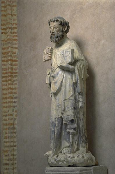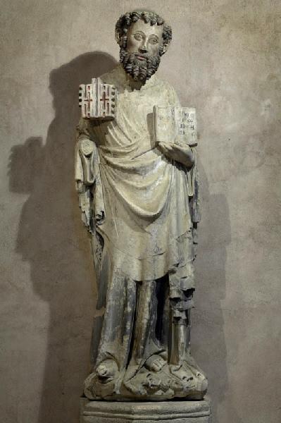 Ancienne chapelle fondée par Jean Tissendier, évêque de Rieux-Volvestre (1324-1348), au nord-est de l'église du couvent des Cordeliers, derrière l'abside ; ensemble dispersé ; voir aussi : Jean Tissendier, évêque de Rieux-Volvestre (1324-1348) figuré en donateur de la chapelle dite de Rieux (RA 552) , Gisant de Jean Tissendier, évêque de Rieux-Volvestre (1324-1348) (RA 560) , Lion couché (RA 560 BIS) , Saint François d'Assise (RA 555 A) , Saint Antoine de Padoue (RA 555 B) , Saint Paul (RA 555 C) , Saint Louis de Toulouse (RA 555 D) , Apôtre (RA 555 E) , Apôtre (RA 555 F) , Apôtre (RA 555 G) , Saint Jean-Baptiste (RA 555 H) , Saint Jacques le Majeur (RA 555 I) , Saint Jean l'Evangéliste (RA 555 J) , Apôtre (RA 555 K) , Apôtre (RA 555 L) , Saint Jacques le Mineur ? (RA 555 N) , Apôtre (RA 555 O) ; en rapport avec : La Vierge, Le Christ ; Numéros d'inventaire des autres éléments conservés au musée des Augustins : RA 552, RA 560, RA 560 bis, RA 555 A-RA 555 L, RA 555 N, RA 555 O.