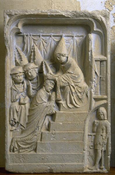 Consécration d'un évêque (Titre cartel 2007) ; Dalle rectangulaire à relief : consécration épiscopale (Ancien titre)