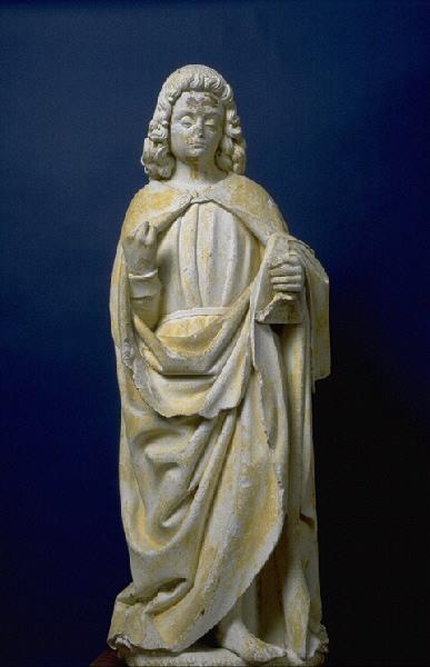 figure biblique (saint Jean, en pied, manteau, tunique, calice)