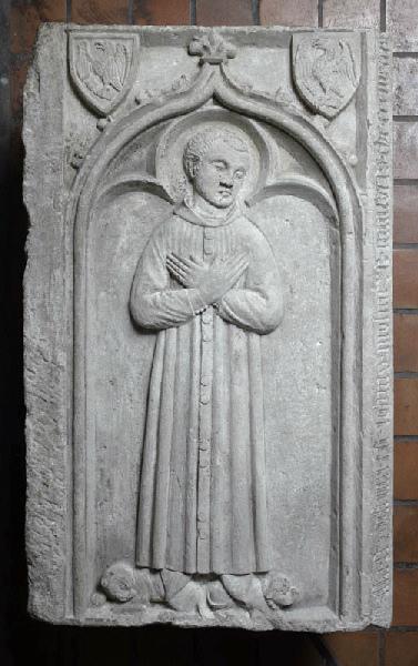 Dalle funéraire de Jean Molinier (Changeur toulousain mort après 1413. Titre cartel 2007.) ; Dalle funéraire à bas-relief de Jean Molinier, changeur toulousain (Ancien titre )