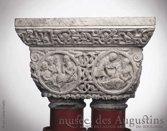 Provient du prieuré de Sainte-Marie-de-la-Daurade ; voir aussi : Histoire de Job (ME 51) , Palmettes en fleurons, Animaux dans des médaillons carrés (ME 181) numéro d'inventaire de l'autre élément