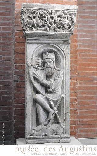 provient du portail de la salle capitulaire du prieuré de Sainte-Marie-de-la-Daurade, démoli en 1811, 1812 ; voir aussi : Le roi david accordant sa harpe (ME 80) Exposé ensemble - Salle romane, 1996 ; Numéro d'inventaire de l'autre élément : RA 452 B (ME 80).
