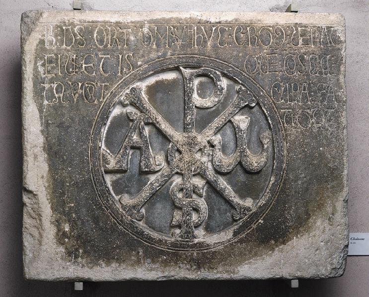 figure biblique (Chrisme, Alpha et Oméga, en médaillon)