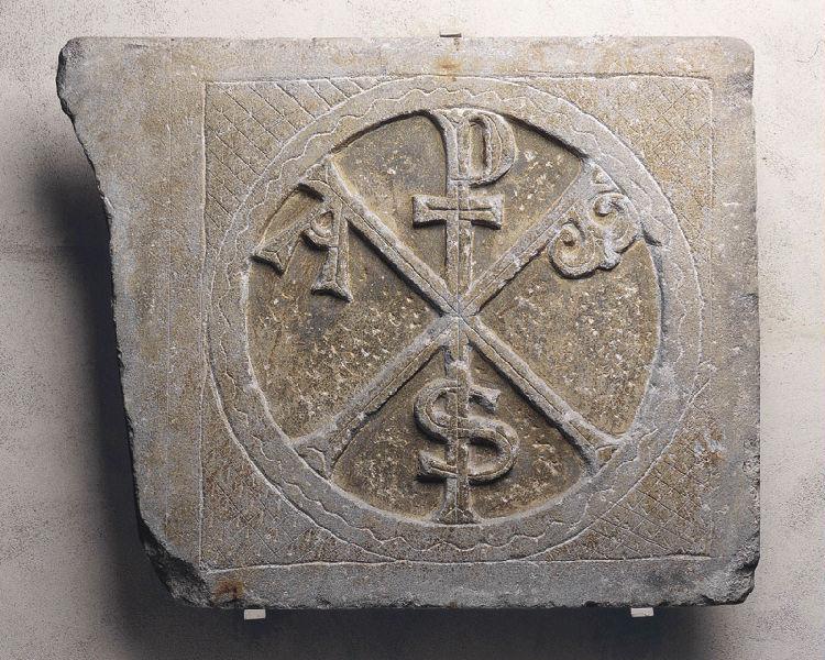 figure biblique (Chrisme, Alpha et Oméga, en médaillon, quadrillé)