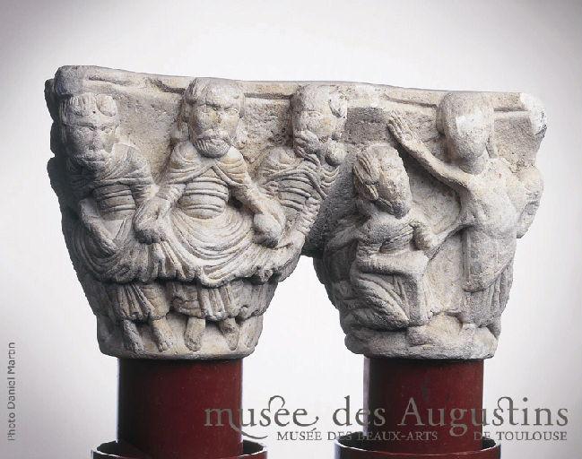 provient de l'abbaye Saint-Paul de Narbonne ; Numéros d'inventaire des éléments : Acanthes (ME 259) , Acanthes (ME 260), Légende de Saint Nicolas. Le miracle des trois clercs. La dotation des trois jeunes filles(ME 262). Les pèlerins d'Emmaüs (ME 263)
