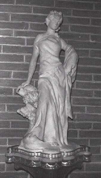 figure (allégorie : automne, femme, en pied, robe, couronne : feuille, faucille, vigne)