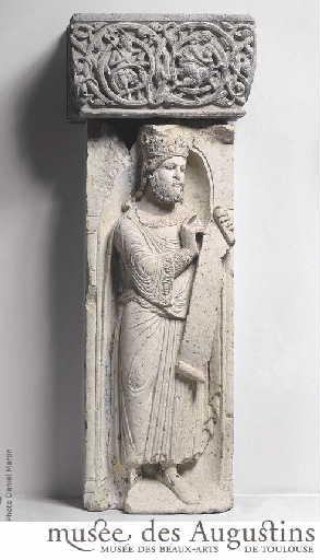 provient du portail de la salle capitulaire du prieuré de Sainte-Marie-de-la-Daurade, démoli en 1811, 1812 ; voir aussi : Frise historiée (ME 69) ; Exposé ensemble - Salle romane, 1996