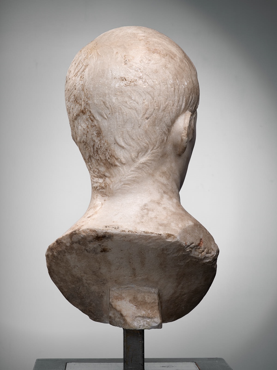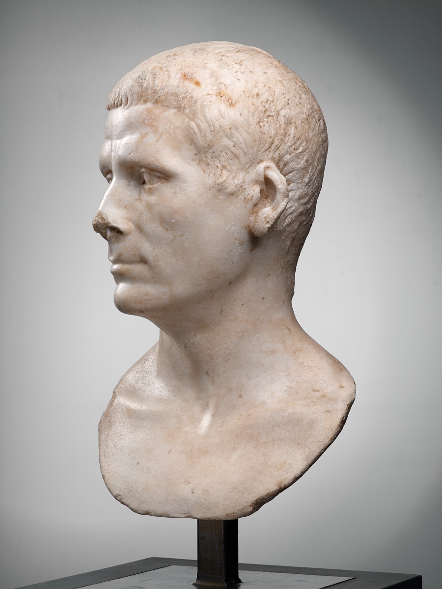Autrefois dit de Jules César, ce portrait est conçu selon des principes caractéristiques de l'ancienne République romaine : réalisme, austérité et gravité. Créé dans les dernières années du règne d’Auguste ou les premières années de celui de Tibère, cette image révèle un personnage encore attaché aux valeurs traditionnelles. Pascal Capus, 2015