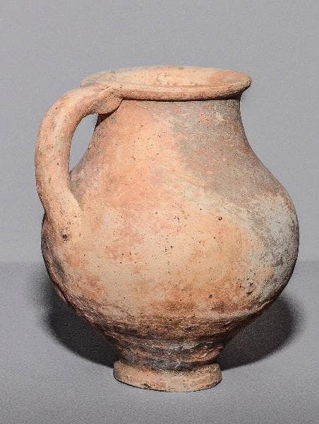 Hauteur en cm 8.1 ; Epaisseur en cm lèvre 0.35 ; anse 1.2 ; Diamètre en cm lèvre 4.4 ; panse 6.7 ; pied 2.9 ; Largeur en cm 7.3