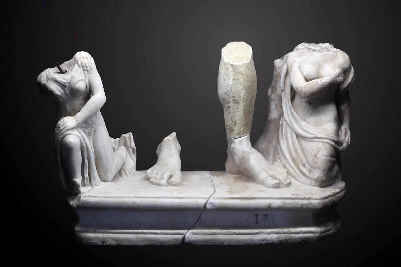 Deux captives aux pieds d'un empereur ; groupe sculpté