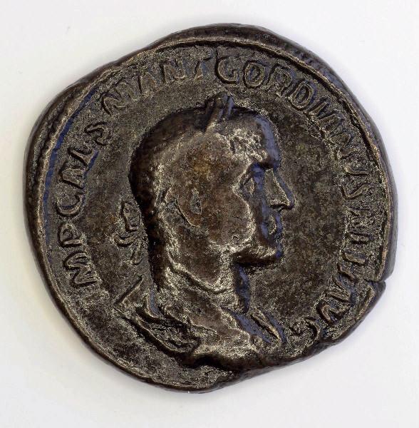 Au droit : IMP CAES M ANT GORDIANVS AFR AVG - Buste lauré, drapé et cuirassé, vu de trois quarts arrière de Gordien Ier à droite. Au revers : VIRTVS AVG S - C - Virtus debout à gauche, sa main droite reposant sur un bouclier et tenant une lance verticale. Texte : Marie-Laure Le Brazidec, 2017