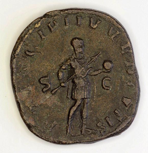 Au droit : M IVL PHILIPPVS CAES - Buste à tête nue drapé et cuirassé de Philippe II, à droite. Au revers : PRINCIPI IVVENTVTIS S - C - Le prince en habit militaire, debout à droite, tenant un globe et une lance transversale, fer en avant. Texte : Marie-Laure Le Brazidec, 2017