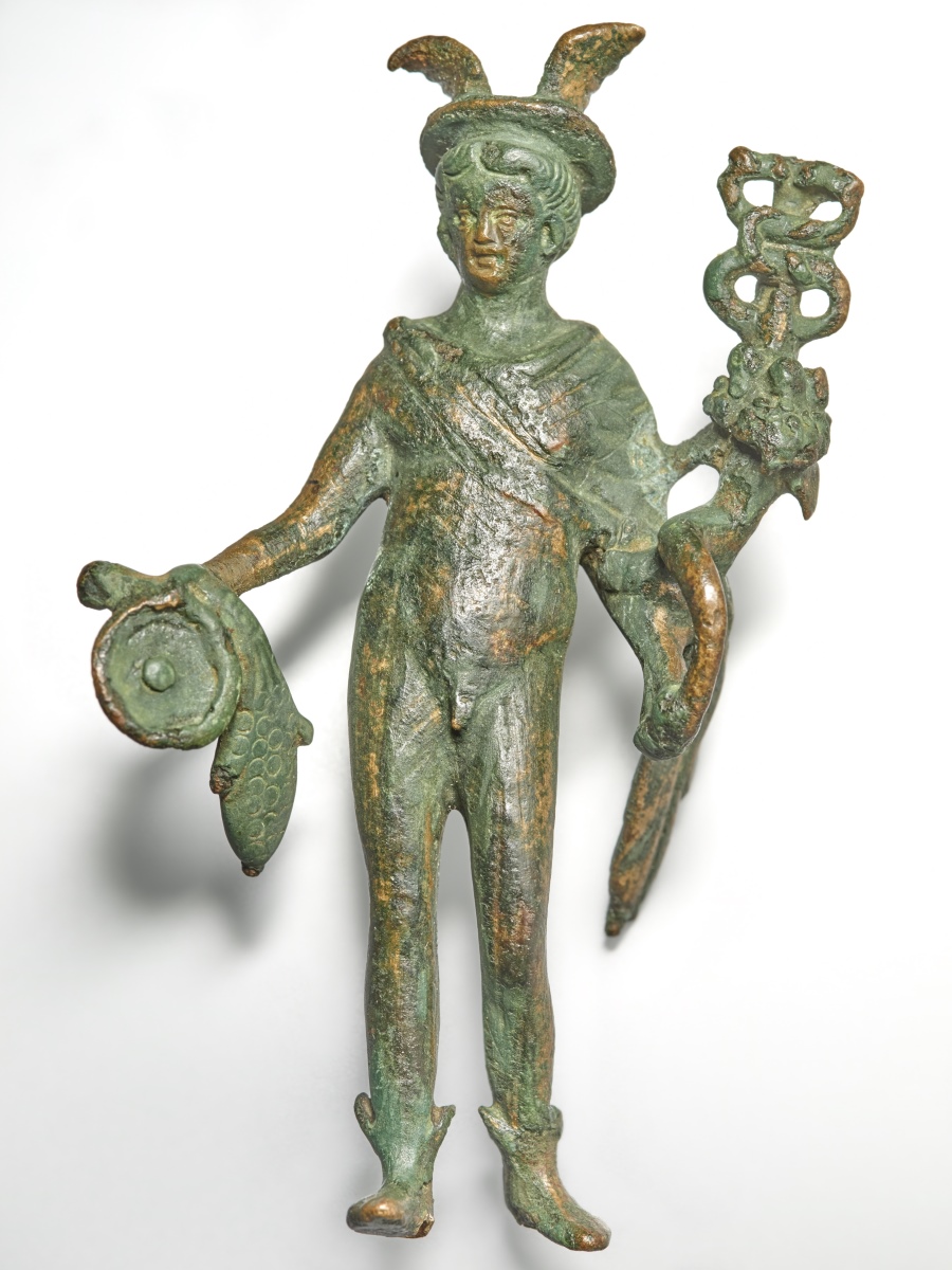 Mercure muni de la bourse, du caducée et de la patère.
