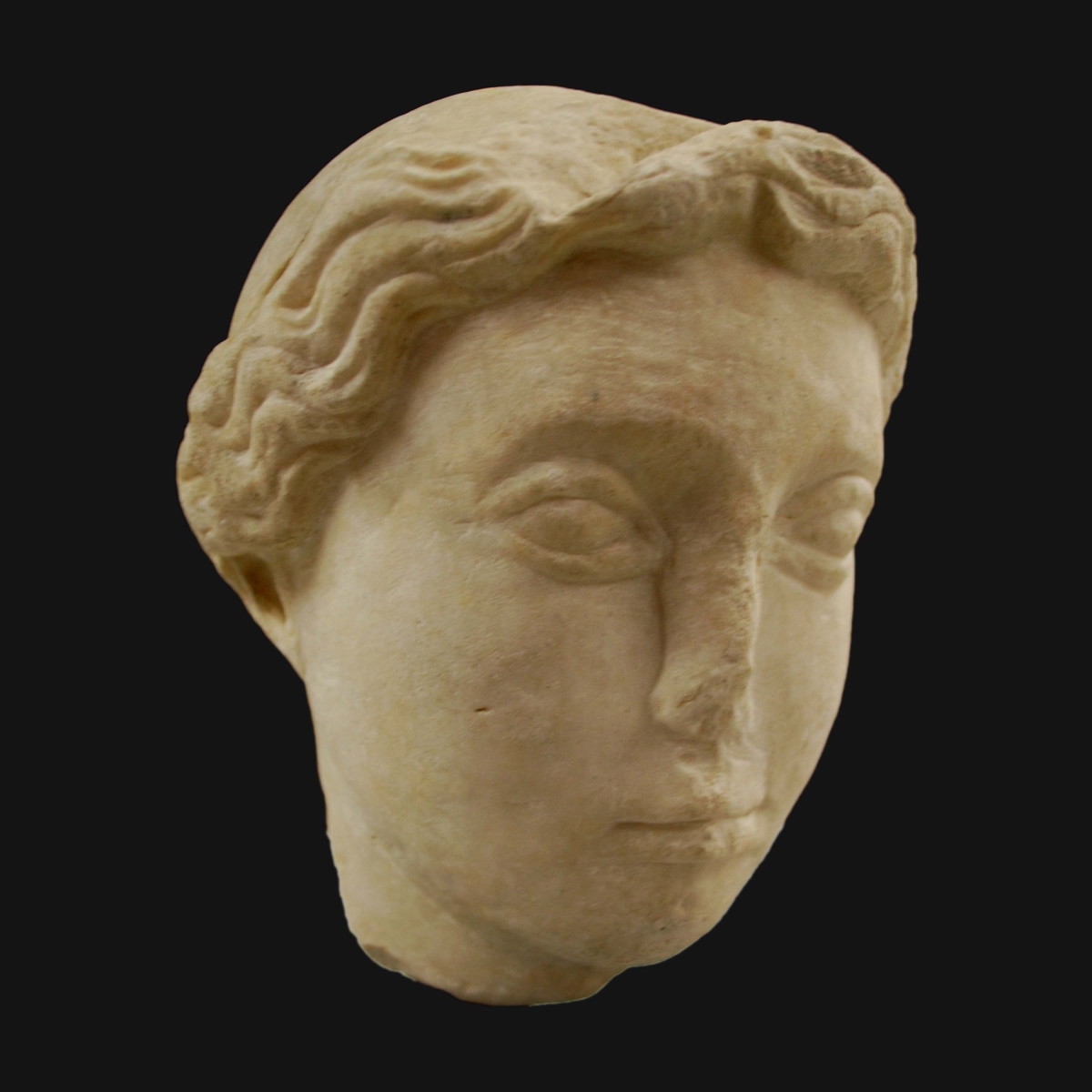 Par l'organisation de sa coiffure, cette tête est à comparer au portrait de Livie du groupe de Béziers. On notera la différence de traitement des parties droite et gauche des ondulations des longues mèches, au-dessus des tempes. À gauche, le travail en bâtons rompus est, soit la marque d'un inachèvement, soit l'intervention d'un sculpteur moins adroit. Daniel Cazes, 2005