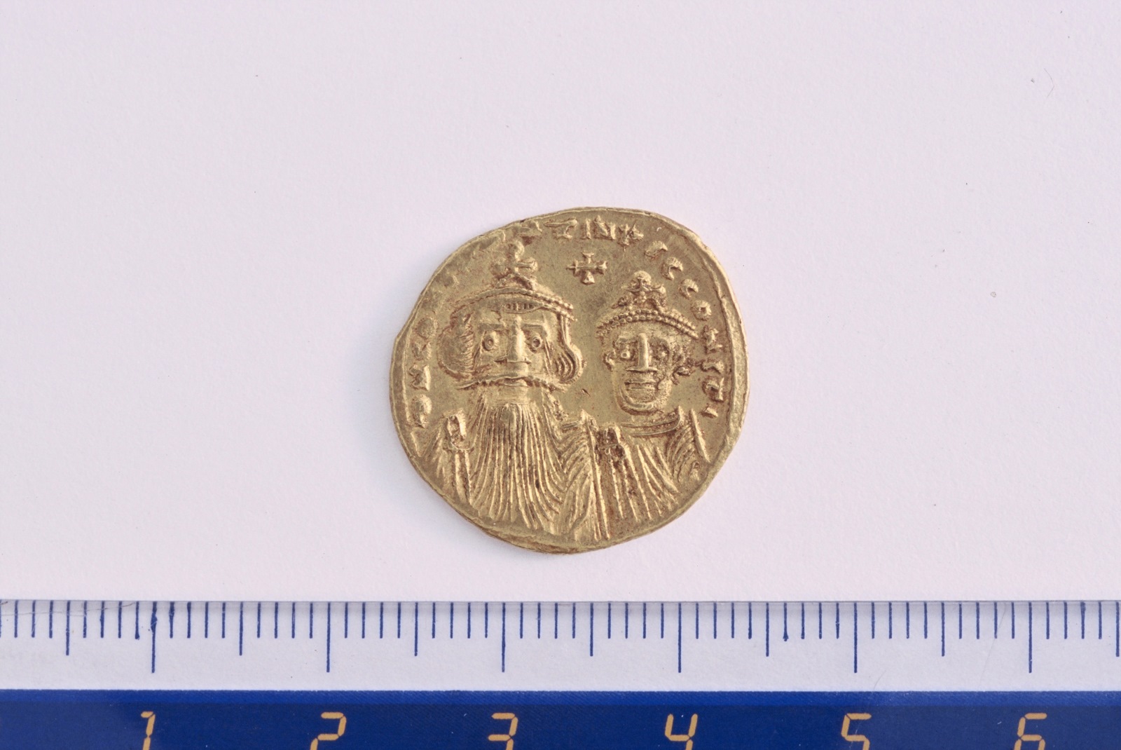 D/ +IhSXPSREX REGNANTIhm le Christ assis de face sur un trône à dossier. R/ OCEbOHO'Rwm nw à droite la Vierge debout bénissant de la main droite l'empereur debout, vêtu du lôros, la main droite sur la poitrine, tenant en main gauche le globe crucigère.