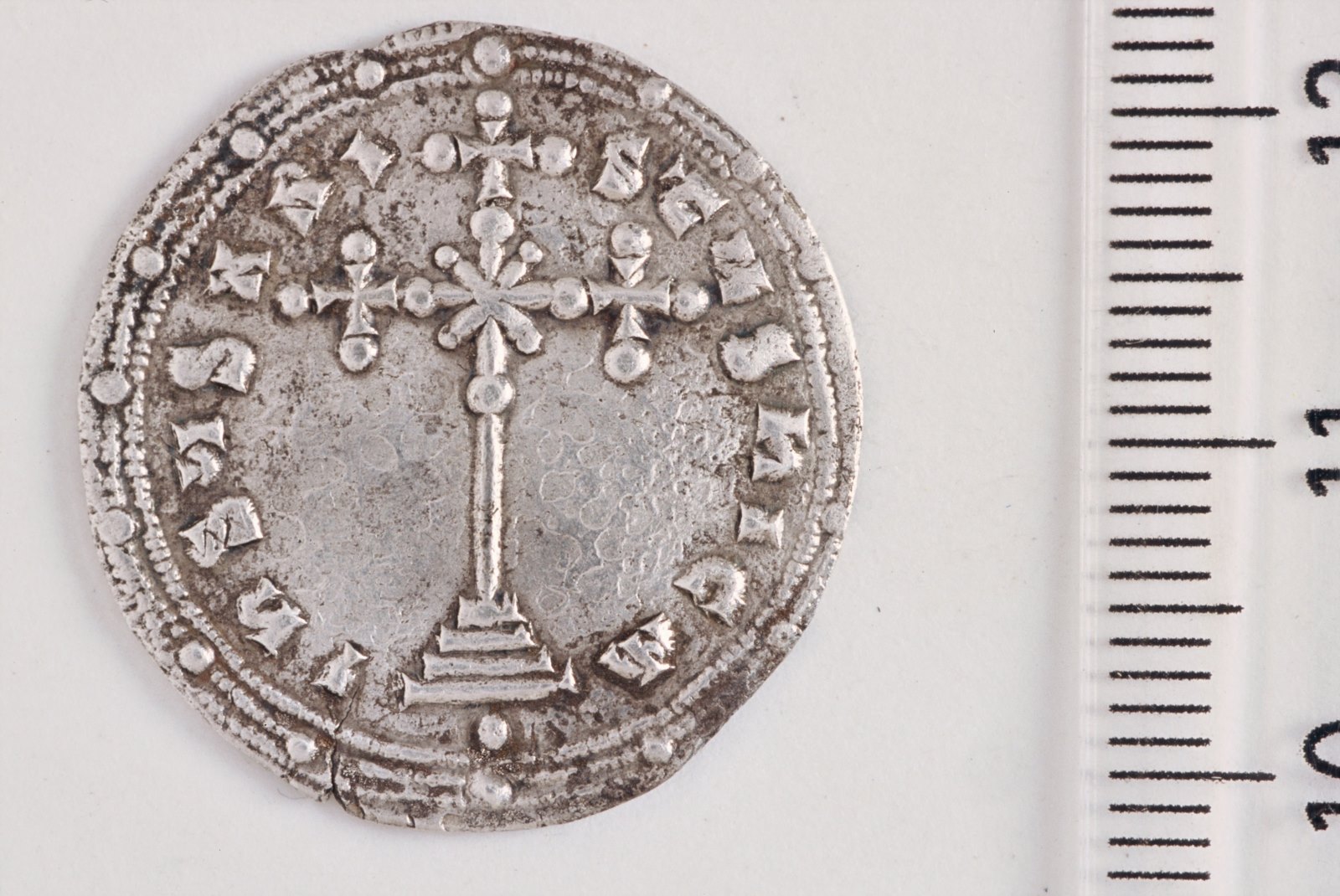 Au droit : A l'intérieur d'un double cercle de grènetis entrecoupé de seize globules, légende en cinq lignes Au revers : IhSUS SRI-STVS hICA, Croix croisetée portée sur trois degrés