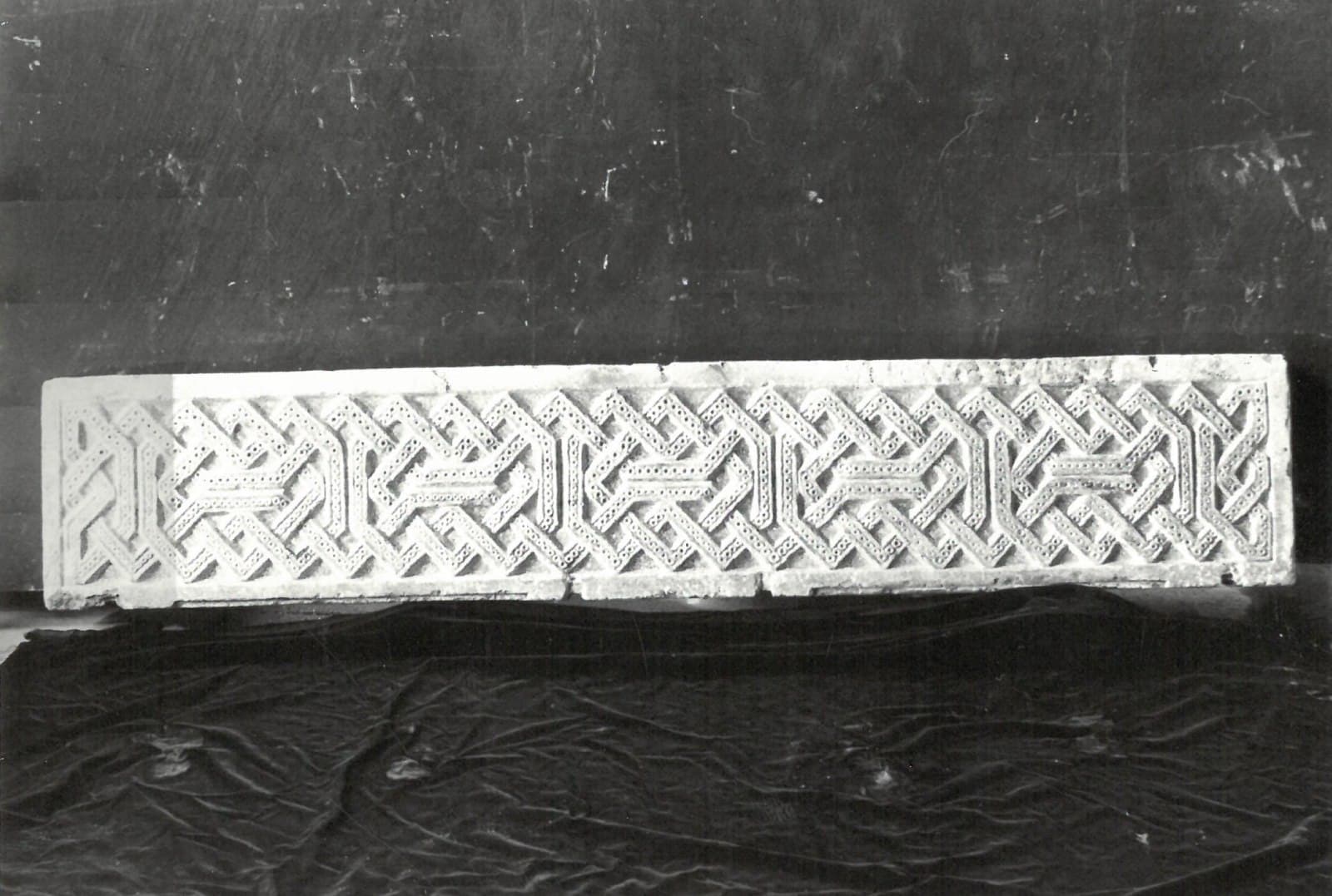 Frise sculptée : méandres rectilignes et perlés, nattés régulièrement et encadrés d'une bordure lisse. (Rachou, 1912)