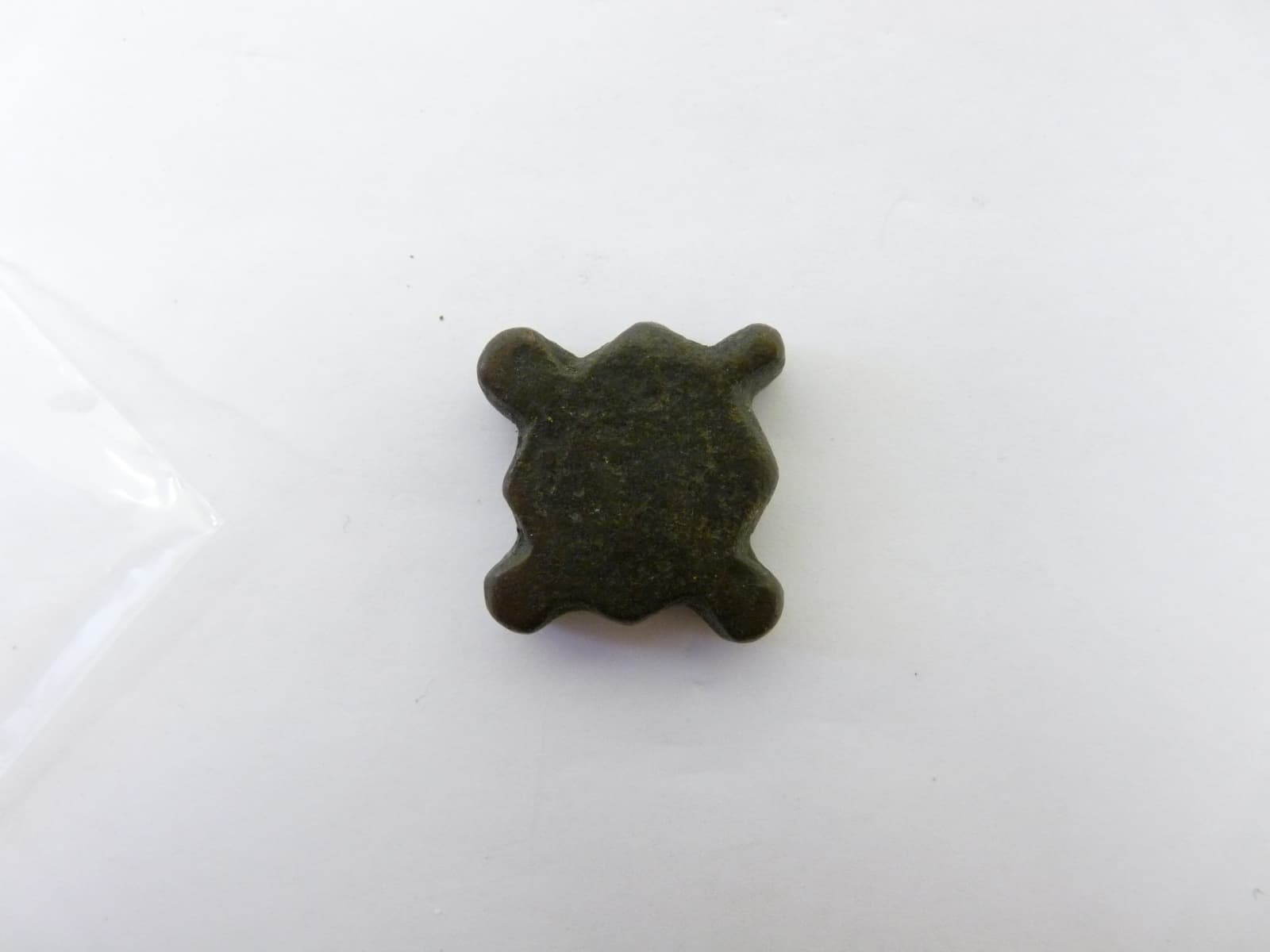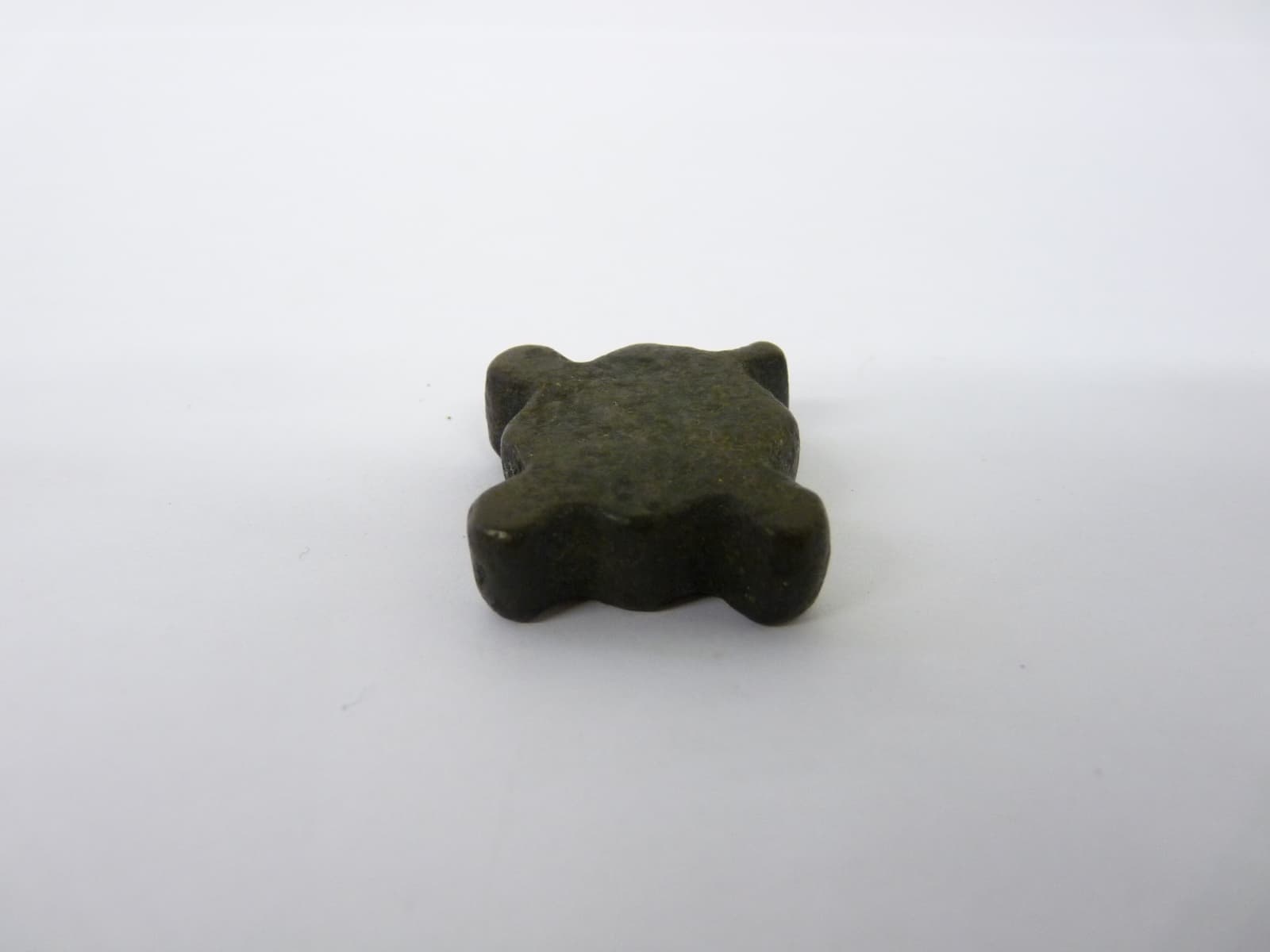 Poids ou méreau de forme quadrangulaire flanqué au milieu de ses côtés d'excroissances arrondies. Aucune inscription sur l'objet.