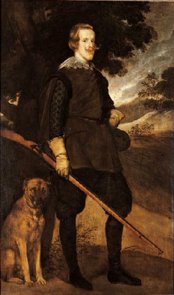 Le Portrait de Philippe IV conservé au musée Goya se rattache à une période de grande activité du peintre de la cour, puisque Velázquez participe alors à la décoration du nouveau palais du Buen Retiro à travers le programme du Salon des Royaumes. De façon conjointe, une série de portraits du roi, du cardinal-infant, frère du roi, et du prince Balthazar Carlos en costume de chasse va alors être peinte très probablement pour la Torre de la Parada, pavillon de chasse dans le parc du Pardo. Velázquez est déjà peintre du roi depuis 1623 et s'est rendu en Italie une première fois en 1629 ; il possède parfaitement son art qui a évolué des sujets naturalistes de sa jeunesse vers des thèmes officiels ou des portraits exécutés avec un raffinement extrême. Etant donné sa qualité, le tableau de Castres s'avère être une réplique de l'original du musée du Prado. Ce dernier laisse apparaître de façon très visible nombre de repentirs dans la pose et la longueur du fusil. Dans un premier temps, le maître a représenté le souverain tête nue, la casquette à la main gauche (musée Goya) puis il a remanié sa composition et a posé un couvre-chef sur la tête du souverain (musée du Prado). Velázquez, pour un sujet plus intime, obéit aux règles rigides de la représentation de l'image royale. La pose, définie une fois pour toutes, n'a pas changé depuis Sánchez Coello, mais ici le paysage naturel, traité dans les gris-bleu et les ocres, dote d'un environnement poétique le portrait du monarque [...] Extrait du cat. Paribas, 1997, J. L. Augé