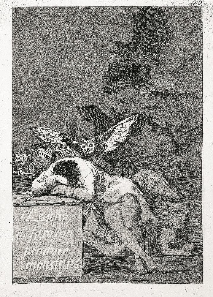 Les Caprices (Planche 43) : Le Sommeil de la raison produit des monstres ; El Sueño de la razon produce monstruos