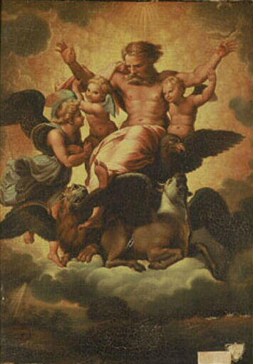 scène biblique (Ezéchiel, vision, Les Evangélistes, Boeuf de saint Luc, Lion de saint Marc)