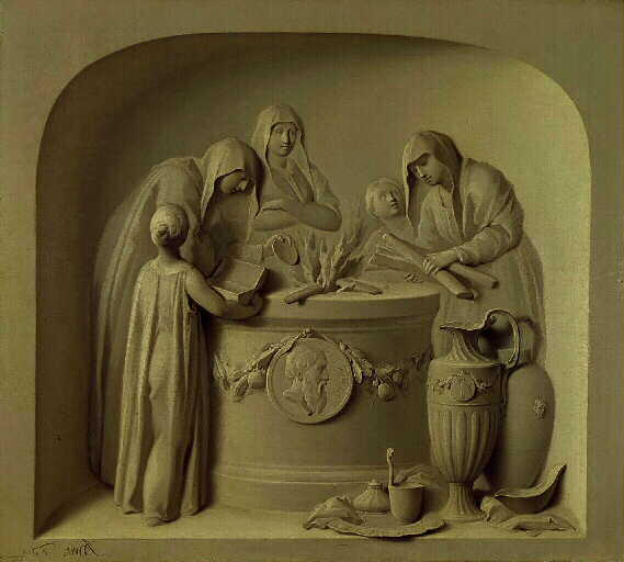 scène (jeune fille, prêtre : Vesta, miracle, antiquité, vase)
