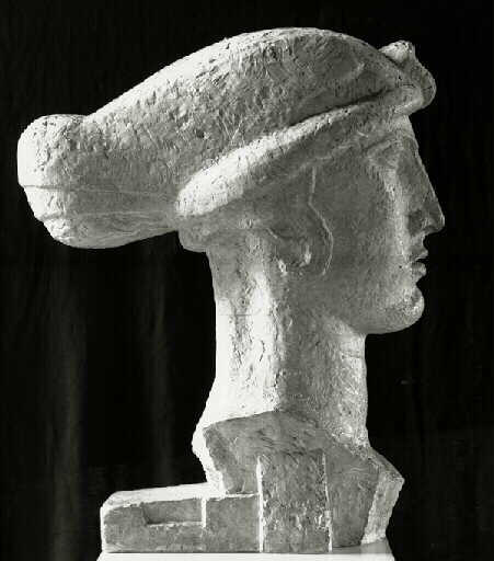commande pour le Monument aux morts de la guerre de 1914 1918 ; Ce plâtre correspond à une première version définitive de la tête qui devait figurer au sommet du corps de la France pour le Monuments aux Morts de la guerre de 1914-1918. Cependant, une fois positionnée chez son fondeur, Rudier, Bourdelle s'aperçut que cette tête avait un cou trop fin et une allure grêle. Il en proposa donc une autre version dont les mèches de cheveux descendaient le long du cou pour le renforcer et où la coiffure s'ornait, au-dessus du front, d'un volumineux motif trilobé. C'est pourquoi ce plâtre diffère de la tête en bronze du Monument définitif du Cours Foucault à Montauban