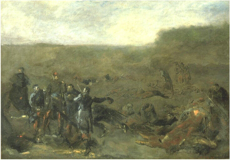 scène historique (bataille, guerre de 1870, cadavre, uniforme, soldat, Buzenval, ?)