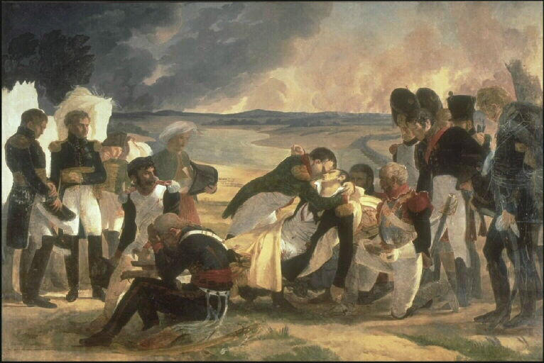 scène historique (cadavre, Lannes Jean, maréchal, Napoléon Ier, penché, soldat, Essling)