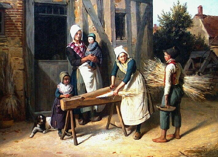 POP | Plateforme ouverte du patrimoinePaysans occupés à préparer le chanvre devant la porte d'une chaumière (titre inscrit)