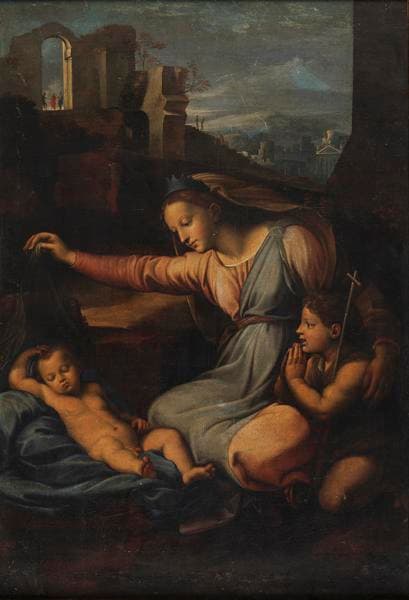 Vierge au diadème bleu (Titre actuel.) ; Le sommeil de Jésus (Titre donné à l'oeuvre par Thomas Henry en 1835)