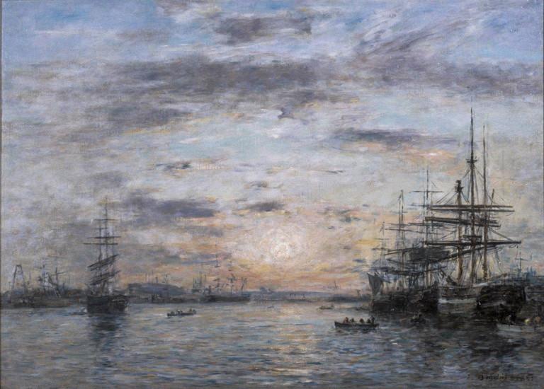 paysage (Le Havre, bateau à voiles, crépuscule, soleil)