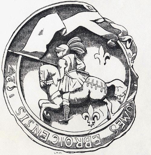 Delamare, R. (abbé) Le calendrier spirituel d'Evreux. au XIIIè siècle. Paris,1928. (P434. reproduction erronée de cette clef.) ; Mineray, J. Evreux: histoire de la ville à travers les âges. Ed. Bertout-Luneray. 1988. 420P. Ill N et B. (P. 62)
