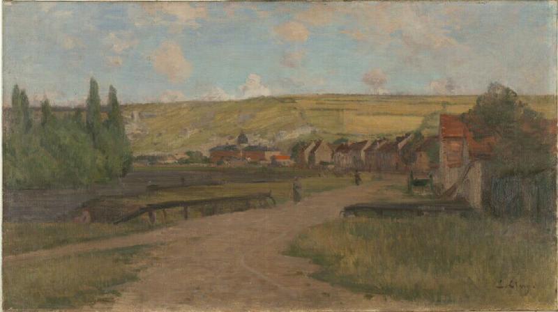 signature, en bas à droite, E. Clary ; inscription sur le châssis, au crayon : le quai au petit-Andely Eure