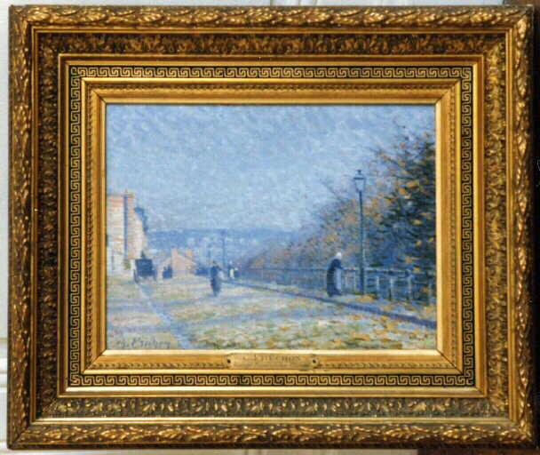 signature, en bas à gauche, Ch Frechon ; nom de marchand inscrit, au dos du carton support, Legrip et Fils Rouen