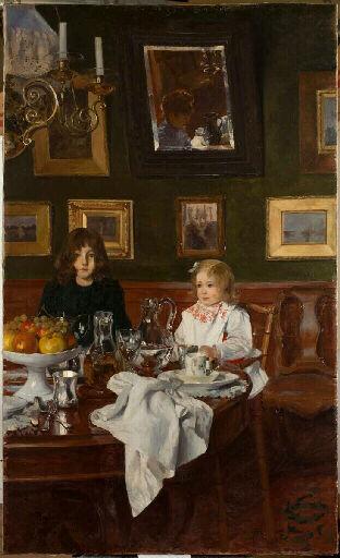 signé et daté, en bas à gauche, Roger Jourdain avril 1890 ; tampon, au dos, Paul Foinet (...) ; étiquette manuscrite, au dos, MPR 11488 R. Jourdain Mes enfants