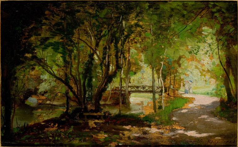 paysage (ruisseau, sous-bois, effet de lumière, pont)