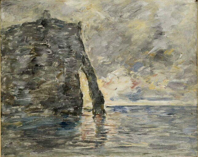 Schmit (Robert), Eugène Boudin, 1824-1898, Paris, galerie Schmit, 1973-1993, 3 vol. (T.3, p. 74, vignette en noir et blanc Sous le titre : Etretat. La falaise d'aval (esquisse).)
