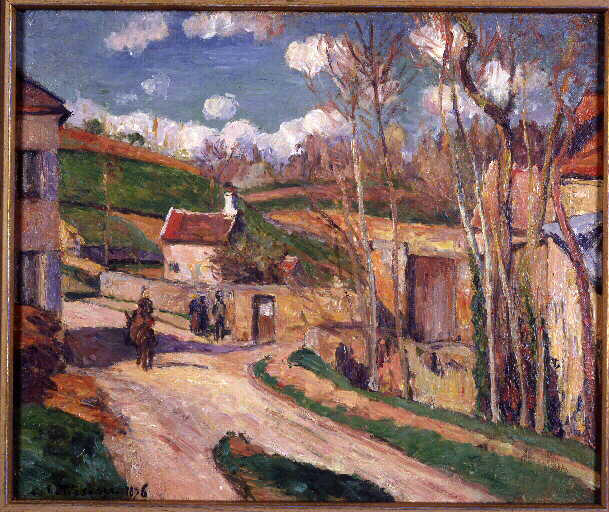 paysage (Pontoise, village, maison, route, cavalier, personnage, arbre, colline, herbe, nuage)