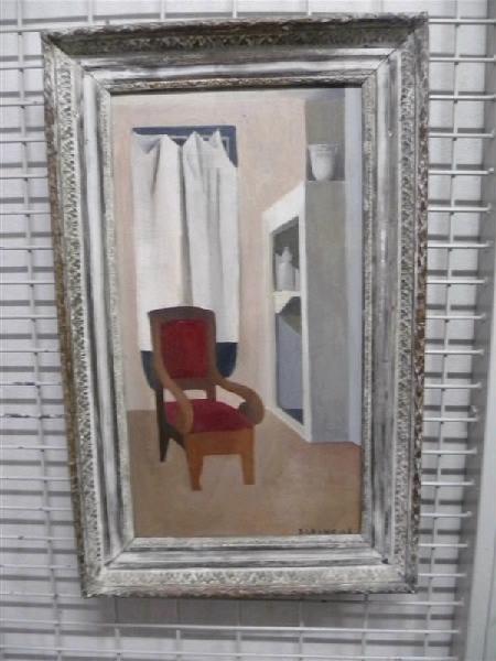 étiquette, au revers : J. LASNE / 53. Le fauteuil rouge.1936 ; étiquette manuscrite, au revers : Le fauteuil rouge. ; daté, signé, en bas à droite : J.LASNE.36