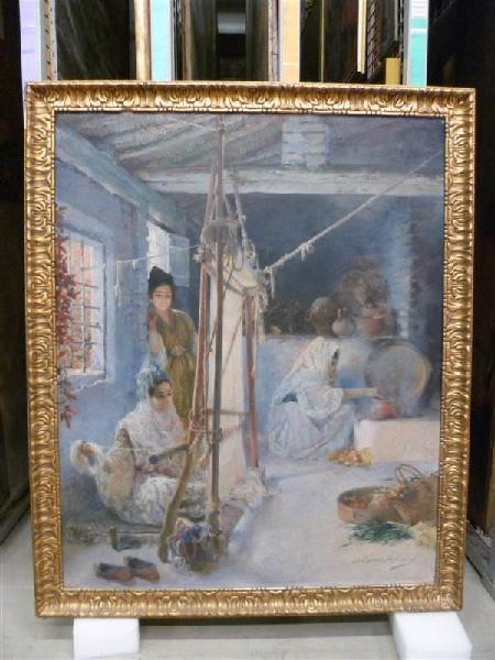 scène (femme, Algérien, tissage, cuisson, robe, couvre-chef, Constantine) ; vue d'intérieur (salle)