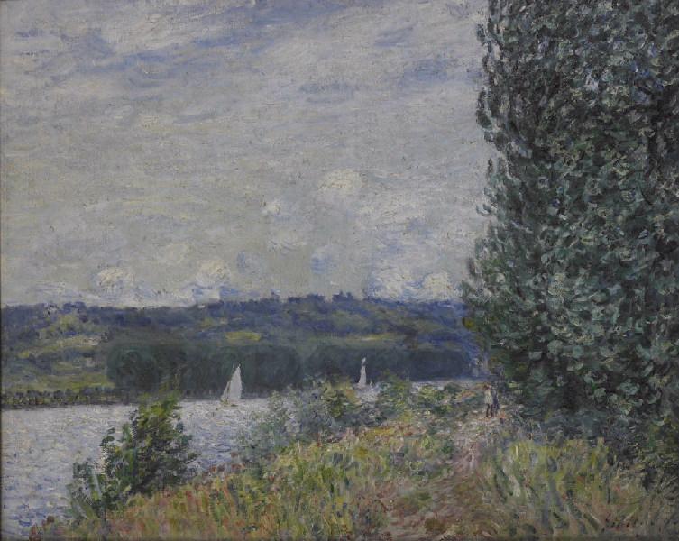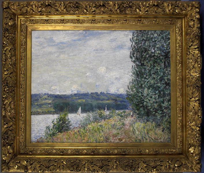 date ; signature, inscription concernant la représentation : SISLEY 94 (S.D.B.D.) ; LA SEINE A LA BOUILLE, COUP DE VENT