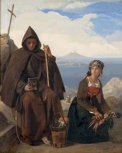 L'ermite de Saint-Nicolas à Ischia, recevant des fruits d'une jeune fille