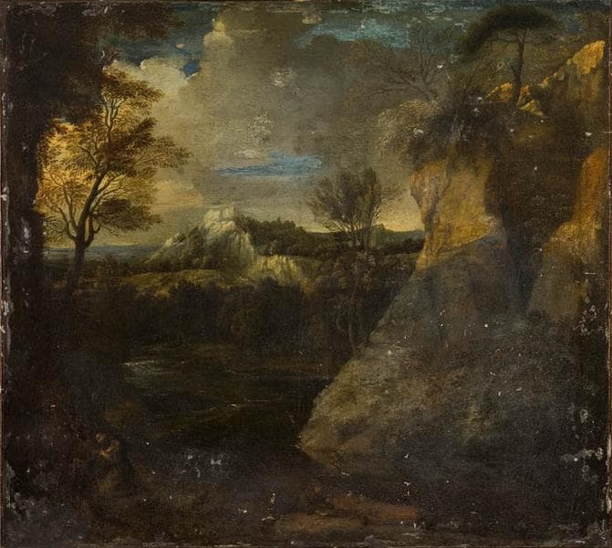 Paysage avec deux moines