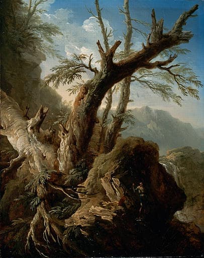 Paysage. Soldats dans un ravin