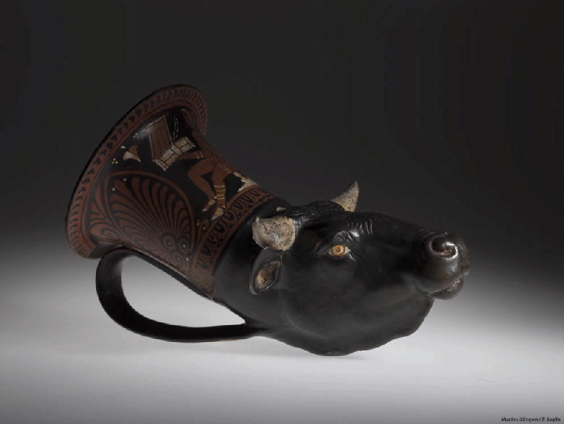 POP | Plateforme ouverte du patrimoineRhyton à tête de taureau à l'Eros tenant un coffret ; Rhyton à tête de bouvillon (Titre de la notice de Catherine Lesseur, 2005-2006) ; Tête de taureau avec représentation d'Eros (Titre de la notice de Catherine Lesseur, 2005-2006)